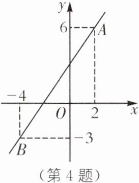 4. 如图,一次函数$y= kx+b(k≠0)的图象经过点A,B$.