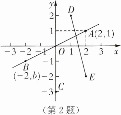 2. 如图,在平面直角坐标系中,正比例函数$y= kx的图象经过A(2,1),B(-2,b)$两点.