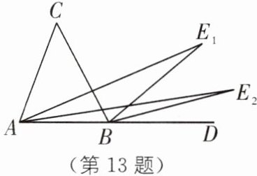 13. 中考新考法 规律探索 (2024·达州中考)如图,在△ABC 中$,AE_1,BE_1 $分别是内角∠CAB,外角∠CBD 的三等分线,且$∠E_1AD= 1/3∠CAB,∠E_1BD= 1/3∠CBD,$在$△ABE_1 $中$,AE_2,BE_2 $分别是内角$∠E_1AB,$外角$∠E_1BD $的三等分线,且$∠E_2AD= 1/3∠E_1AB,∠E_2BD= 1/3∠E_1BD,…,$以此规律作下去,若∠C= m°,则∠Eₙ= ______度.