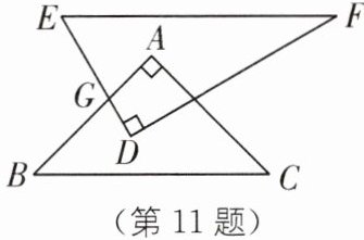 11. 如图摆放的一副学生用直角三角板,∠F= 30°,∠C= 45°,AB 与 DE 相交于点 G,当 EF//BC 时,求∠EGB 的度数.