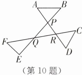 10. 8字模型 如图,平面上六个点 A,B,C,D,E,F 构成一个封闭折线图形,求∠A+∠B+∠C+∠D+∠E+∠F 的度数.
