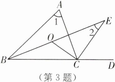 3.(2025·陕西汉中汉台区期末)如图,在△ABC中,BO,CO分别平分∠ABC,∠ACB,且BO,CO交于点O,CE为外角∠ACD的平分线,交BO的延长线于点E.记∠BAC= ∠1,∠E= ∠2,已知∠2= 25°.求∠1与∠BOC的度数.