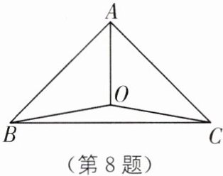 8. 如图,已知 AB= AC,BO= CO,∠BOC= 160°,求∠AOB 的度数.