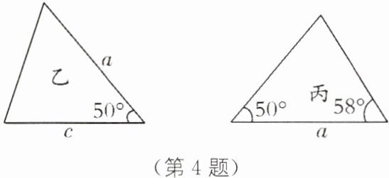 丙三角形:已知两角50°、58°和夹边a,即ASA,可判定与△ABC全等。