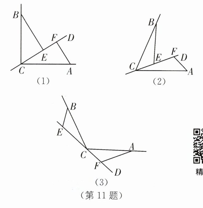 11. 中考新考法 类比猜想 如图,CD 是经过∠BCA 顶点 C 的一条直线,CA= CB,E,F 分别是直线 CD 上两点,且∠BEC= ∠CFA= α.