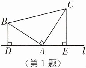 1. 某学习小组在探究三角形全等时,发现了下面这种典型的基本图形. 如图,已知:在△ABC中,∠BAC= 90°,AB= AC,直线 l 经过点 A,BD⊥直线 l,CE⊥直线 l,垂足分别为 D,E.求证:DE= BD+CE.
