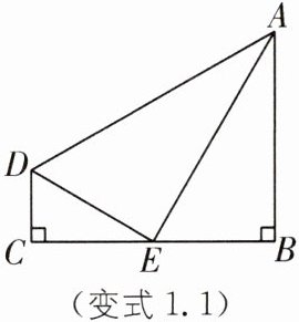 变式 1.1 实验班原创 如图,∠B= 90°,∠C= 90°,E为 BC 的中点,AE⊥DE,DE 平分∠ADC. 求证:(1)AE 是∠DAB 的平分线;(2)AD= DC+AB.