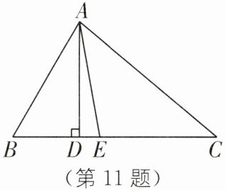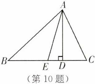 10. 如图,已知 AE,AD 分别为△ABC 的边 BC 上的中线和高线,且 AB= 11 cm,AC= 7 cm.