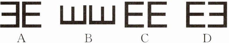 C [解析]A,B,D选项中的两个字母"E"都不能找到这样的一条直线,使它们沿一条直线折叠,直线两旁的部分能够互相重合,所以不是轴对称图形;C选项中的两个字母"E"能找到这样的一条直线,使它们沿一条直线折叠,直线两旁的部分能够互相重合,所以是轴对称图形.故选C.