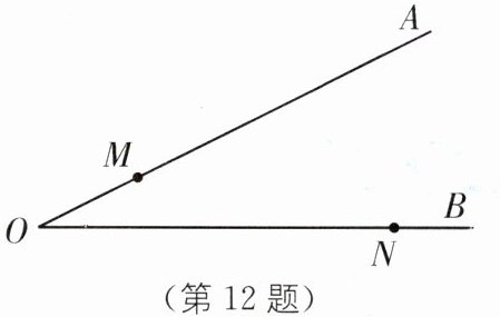 12. 中考新考法 创新作图题 如图,点 M,N 分别为∠AOB 边上的定点,在∠AOB 的边 OB,OA 上分别找两点 P,Q 使得 MP+PQ+QN 最小.(保留作图痕迹,写出作法)