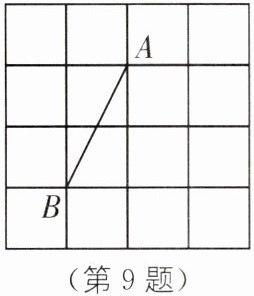 9. 如图,在4×4的正方形网格中有两个格点A,B,连结AB,在网格中再找一个格点C,使得△ABC是等腰直角三角形,满足条件的格点C的个数是( ).