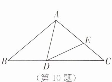 10.(2024·杭州西溪中学期中)如图,在$\triangle ABC$中,$AB= AC$,点 D 在 BC 上,点 E 在 AC 上,且$DA= DE$,若$\angle BAD= 35^\circ$,$\angle EDC= 25^\circ$,则$\angle DAE$的度数为(
