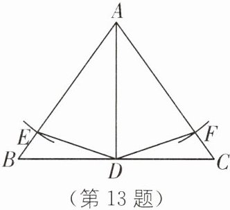 13.(2023·苏州中考)如图,在△ABC中,AB= AC,AD 为△ABC 的角平分线. 以点 A 为圆心,AD 的长为半径画弧,与 AB,AC 分别交于点 E,F,连结 DE,DF.
