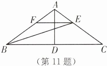 11. 如图,在△ABC中,AB= AC,D 是 BC 边上的中点,连结 AD,BE 平分∠ABC 交 AC 于点 E,过点 E 作 EF//BC 交 AB 于点 F.