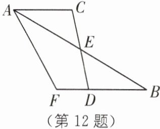 12. 如图,AB,CD 相交于点 E 且互相平分,F 是 BD 延长线上一点,若∠FAC= 2∠BAC.