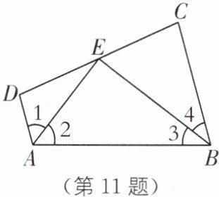 11. 如图,已知:∠C+∠D= 180°,∠1= ∠2,∠3= ∠4. 求证:AD+BC= AB.