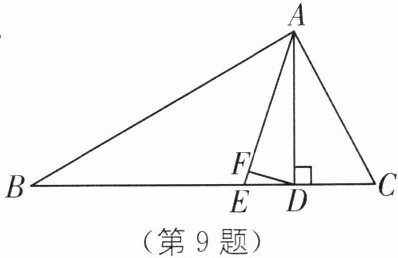 9. 如图,在△ABC 中,∠B= 30°,∠C= 62°,AE 平分∠BAC.