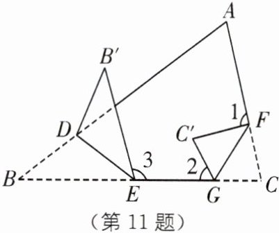 11. (2024·江西南昌期末改编)已知△ABC 中,∠A= 65°,将∠B,∠C 按照如图所示折叠,若∠ADB′= 35°,求∠1+∠2+∠3 的度数.