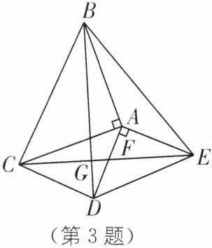 3.(第六届睿达杯数学竞赛一试改编)如图,△ABC和△ADE都是等腰直角三角形,∠BAC= ∠DAE= 90°,连结CE交AD于点F,连结BD交CE于点G,连结BE,CD,则下列结论:①CE= BD;②EC⊥BD;③∠ADC= 90°;④∠ADB= ∠AEB;⑤$S_{四边形BCDE}= \frac {1}{2}BD\cdot CE$;⑥$BC^{2}+DE^{2}= BE^{2}+CD^{2}$;⑦$S_{\triangle ABE}= S_{\triangle ACD}$.正确的有______(填序号).