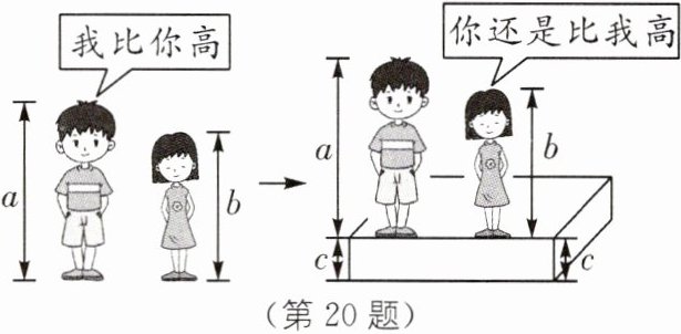 20. (2024·长春中考)不等关系在生活中广泛存在.如图,a,b分别表示两位同学的身高,c表示台阶的高度.图中两人的对话体现的数学原理是(