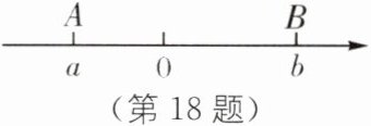 18. 数形结合思想 如图,点A,B 在数轴上分别表示有理数a,b. A,B 两点之间的距离表示为AB,在数轴上A,B 两点之间的距离$AB= |a-b|$.利用数形结合思想回答下列问题: