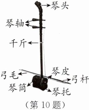 10. 传统文化 二胡 (2024·济南槐荫区二模)二胡是中国古老的民族拉弦乐器之一,演奏家发现,二胡的"千斤"钩在琴弦长的黄金分割点处("千斤"上面一截琴弦比下面一截琴弦短),奏出来的音调最和谐悦耳.如图,一把二胡的琴弦长为80 cm,求"千斤"下面一截琴弦长(结果保留根号).