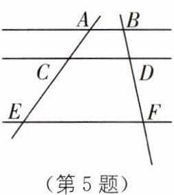 5. 如图,已知 AB//CD//EF,若$\frac{AC}{CE}= \frac{1}{2}$,则$\frac{DF}{BF}$的值为(