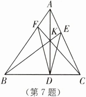 7. 8字型 (宁波效实中学自主招生)如图,在△ABC 中,AD 是 BC 边上的高,K 为 AD 上一点,连结 BK 并延长交 AC 于点 E,连结 CK 并延长交 AB 于点 F. 求证:∠ADE= ∠ADF.