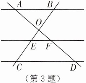 3. 教材 P125 例 1·拓展 (2025·台州期末)如图,直线 AD,BC 交于点 O,AB//EF//CD,若 AO= 2,OF= 1,FD= 2,则$\frac{AB}{CD}$的值为______.