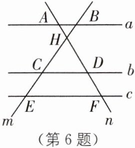 6. 数形结合思想 (2025·大连一模)如图,已知直线 a//b//c,分别交直线 m,n 于点 B,C,E,A,D,F,直线 m,n 相交于点 H,下列结论中错误的是(