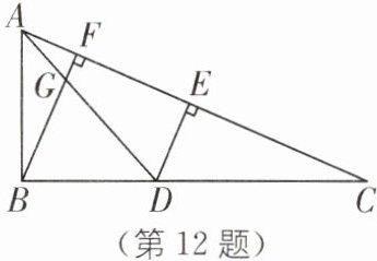 12. 如图,在 Rt△ABC 中,∠ABC= 90°,边 AC 的垂直平分线 DE 交 BC 于点 D,交 AC 于点 E,BF⊥AC 于点 F,连结 AD 交 BF 于点 G.若 BC= 6,GF/BG= 1/8,求 DE 的长.