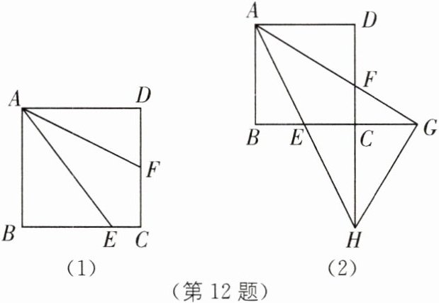 12. 如图,在正方形 ABCD 中,E 为边 BC 上任意一点,AF 平分$\angle EAD$,交 CD 于点 F.