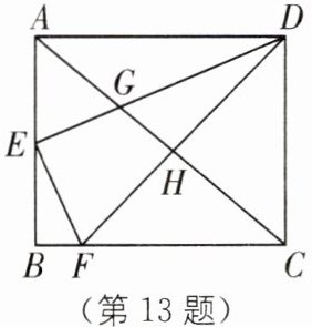 13. 一线三等角模型 (2024·深圳龙岗区二模)如图,在矩形 ABCD 中,E 是 AB 的中点,作 $EF \perp DE$ 交 BC 于点 F,对角线 AC 分别交 DE,DF 于点 G,H,当 $DH \perp AC$ 时,则$\frac{GH}{EF}$的值为______