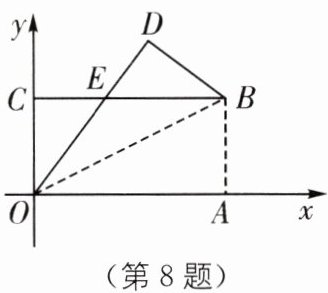 8. 如图,在矩形 OABC 中,OA= 8,OC= 4,沿对角线 OB 折叠后,点 A 与点 D 重合,OD 与 BC 交于点 E,则点 D 的坐标是______.