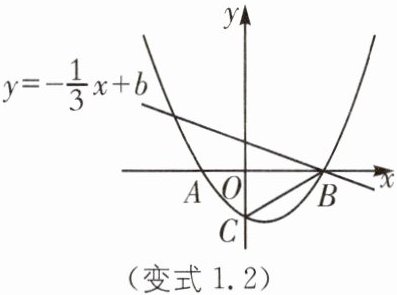 变式 1.2 (2024·安徽三模)如图,在平面直角坐标系中,抛物线$y=ax^{2}-ax-2$与x轴交于$A(-2,0)$,B两点,交y轴于点C,直线$y=-\frac {1}{3}x+b$经过点B.