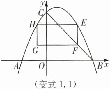(2)点E在第一象限内,过点E作$EF// y$轴,交BC于点F,作$EH// x$轴,交抛物线于点H,点H在点E的左侧,以线段EF,EH为邻边作矩形EFGH,当矩形EFGH的周长为11时,求线段EH的长.