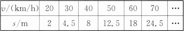 ∴制动距离s与车辆速度v之间的关系式为$ s=\frac{1}{200}v^{2} $.