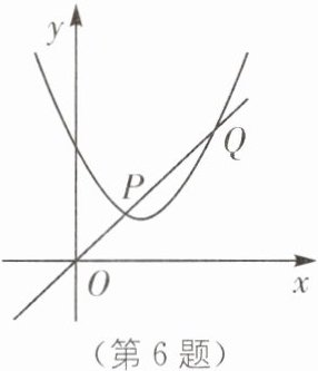 6.(2024·杭州萧山区高桥初中月考)如图,一次函数$y_{1}= x与二次函数y_{2}= ax^{2}+bx+c$的图象相交于P,Q两点,则关于一元二次方程$ax^{2}+(b-1)x+c= 0$的根的说法正确的是(