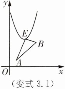 变式3.1 实验班原创 如图,点$A,B是直线y= x$在第一象限中的两点,横坐标分别为$a,a+3$,若点$E是抛物线y= x^{2}-4x+8$上的一点,连结$EA,EB$,求$\triangle ABE$面积的最小值.