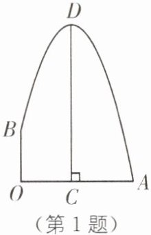 1. (2024·山东泰安期末)如图,某广场要建一个圆形喷水池,计划在池中心位置竖直安装一根顶部带有喷水头的水管,使喷出的抛物线形水柱在与池中心的水平距离 OC 为 0.5 m 处达到最高,高度 CD 为 1.44 m,水柱落地处离池中心的水平距离 OA 为 1.1 m,那么水管的设计高度 OB 应为______m.