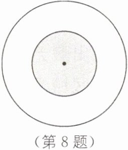 8. 几何模型 有一只蚂蚁在如图所示的圆上爬来爬去,两圆半径分别为 1 和 2,则蚂蚁最终停留在白色区域的可能性