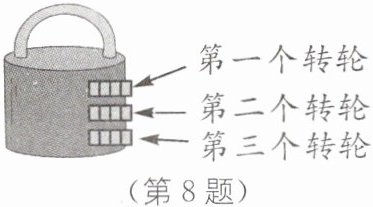 8. 新情境 破解密码 实验班原创 密码锁有三个转轮,每个转轮上有十个数字:0,1,2,…,9.小黄同学是9月份中旬出生,用生日“月份+日期”设置密码:9××.小张同学要破解其密码: