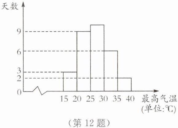 (1)由条形统计图,知去年六月份最高气温不低于$ 30^{\circ}C $的天数为$ 6 + 2 = 8 $(天).