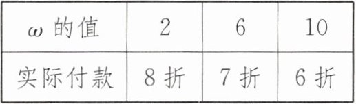 方案二:顾客购物达到 200 元可抽奖一次,具体规则是:在一个箱子内装有四张一样的卡片,四张卡片中有 2 张写着数字 1,2 张写着数字 5. 顾客随机从箱子内抽出两张卡片,两张卡片上的数字和记为 ω,ω 的值和享受的优惠如表所示.