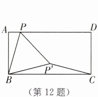 12. 手拉手模型 (2025·绍兴诸暨期中)如图,在矩形 ABCD 中,$BC= 2AB$,点 P 为边 AD 上的一个动点,线段 BP 绕点 B 顺时针旋转$60^{\circ }得到线段BP'$,连结$PP',CP'$.当点$P'$落在边 BC 上时,$\angle PP'C$的度数为______,当线段$CP'$的长度最小时,$\angle PP'C$的度数为______.