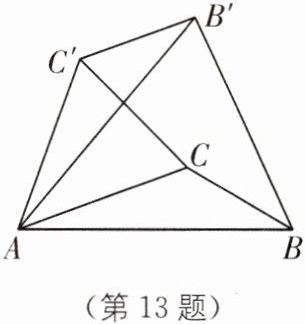 13. 如图,在$\triangle ABC$中,$\angle CAB= 20^{\circ },\angle ABC= 30^{\circ }$,将$\triangle ABC$绕点 A 逆时针旋转$50^{\circ }得到\triangle AB'C'$,以下结论:①$BC= B'C'$;②$AC// C'B'$;③$C'B'\perp BB'$;④$\angle ABB'= \angle ACC'$.其中正确的结论是______