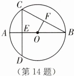 14.(2025·杭州西湖区期中)如图,$\odot O的直径AB垂直于弦CD$,垂足为$E$,$AE= 2$,$CD= 8$.