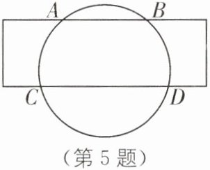 5. 中考新考法 课题实践活动 (2024·江苏扬州高邮期中)综合实践活动要求只用一张矩形纸条和刻度尺测量茶碗的碗口半径. 小靓同学所在的学习小组的方法:如图,将纸条拉直紧贴碗口上,纸条的上下边沿分别与碗口相交于 $A$,$B$,$C$,$D$ 四点,若该纸条宽为 $8\ \text{cm}$,用刻度尺量得 $AB= 6\ \text{cm}$,$CD= 10\ \text{cm}$,则碗口的半径为______$\text{cm}$.(结果保留根号)