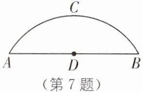 7. 如图,有一座圆弧形拱桥,桥下水面宽度 $AB$ 为 $12\ \text{m}$,拱高 $CD$ 为 $4\ \text{m}$.