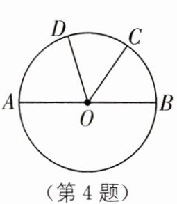 4.(2024·大庆二模)如图,$AB是\odot O$的直径,$\widehat{BC}= \widehat{DC}$,$\angle COD= 52^\circ$,则$\angle AOD$的大小为______.